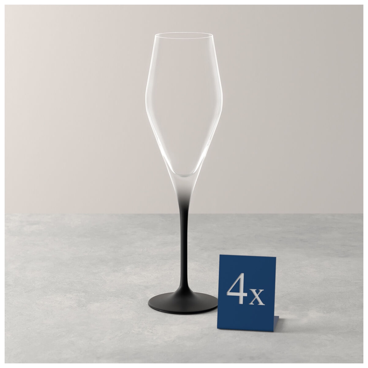 Zestaw czterech kieliszków do szampana Manufacture Rock od Villeroy & Boch harmonijnie uzupełnia aranżację stołu. Kieliszki z czarną nóżką doskonale pasują do porcelany Manufacture w skalistej czerni lub bieli i nadają stołowi elegancki wygląd. A wszystko po to, aby stworzyć wyjątkowe chwile podczas posiłku.
