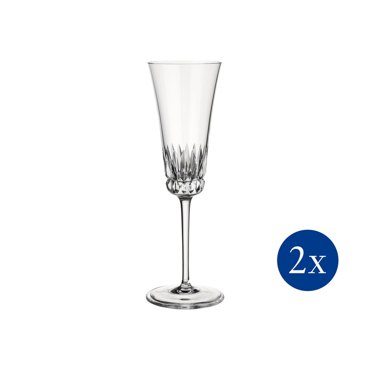 Stylowy i elegancki zestaw dwóch kieliszków do szampana z kolekcji Grand Royal marki Villeroy & Boch. Podawaj musujące wino lub szampana w tym eleganckim kielichu na uroczystą okazję i stwórz ekskluzywną i luksusową atmosferę. Spraw, aby wyjątkowe chwile były niezapomniane. Kolekcja Grand Royal to wysokiej jakości, niezwykle starannie wykonane szklane naczynia dla miłośników wyrafinowanego i ekskluzywnego wzornictwa. Delektuj się ulubionym winem w wyjątkowo elegancki sposób.