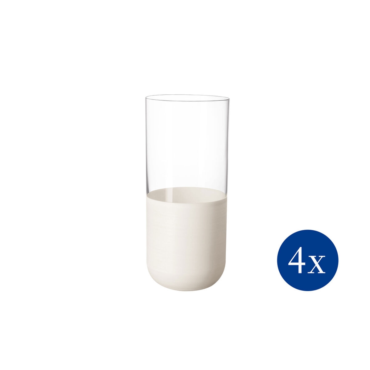 Zestaw czterech szklanek do long drinków Manufacture Rock Blanc od Villeroy & Boch harmonijnie uzupełnia aranżację stołu. Kolekcja cechuje się purystycznym designem, przypominającym biały łupek, co nadaje im wyjątkowy wygląd. Wykonane z najwyższej jakości szkła kryształowego, zapewniają nie tylko estetyczny wygląd, ale także przyjemne wrażenia dotykowe. Zestaw szklanek do long drinków Manufacture Rock blanc obejmuje cztery szklanki, które idealnie leżą w dłoni dzięki swojej wyjątkowej fakturze. Częściowo ręcznie malowane w kolorze matowej bieli, wyróżniają się chłodną elegancją, doskonałą funkcjonalnością oraz ekskluzywnym, stylowym designem, stanowiąc mocny akcent w domowym koktajlbarze.