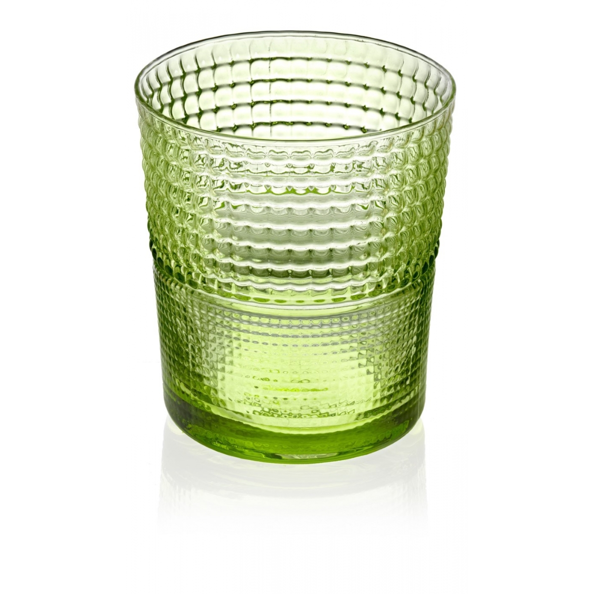 Zestaw 24 szklanek wykonanych z dmuchanego szkła barwionego w masie. Szklanki z kolekcji Speedy wyróżniają się efektowną podwójną optyką, która nadaje im wyjątkowego charakteru. Idealne do codziennego użytku, a także jako elegancki akcent na bardziej uroczystych stołach.