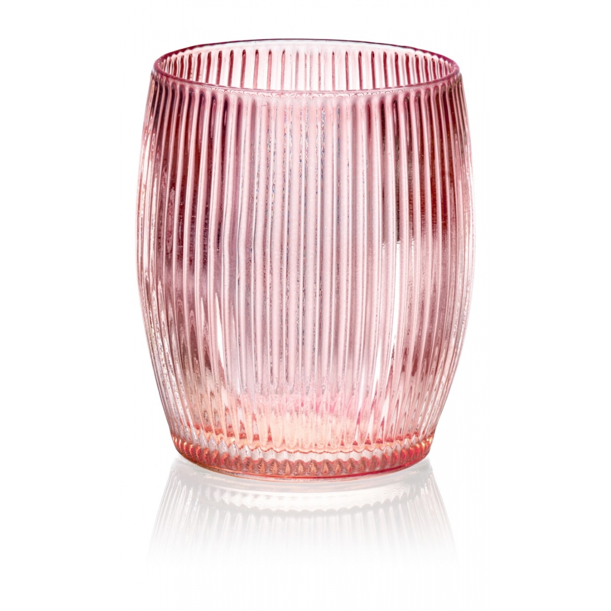 Zestaw 24 różowych szklanek z dmuchanego szkła. Charakterystyczny beczkowaty kształt i pionowa optyka canneté nadają im wyjątkowy wygląd, który sprawdzi się zarówno na co dzień, jak i przy bardziej eleganckich okazjach.