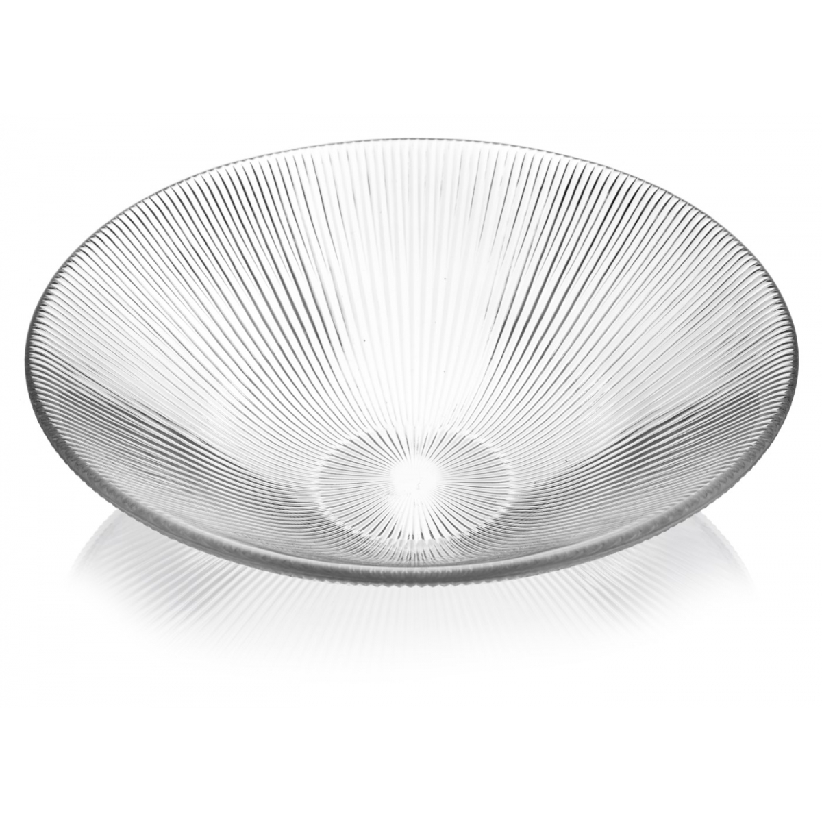 Misa dekoracyjna z kolekcji Ishtar wykonana jest z przezroczystego, prasowanego szkła. Jej design łączy prostotę z oryginalnością, a charakterystycznym elementem jest wzór canneté – regularne żłobienia prostopadłe do środka misy, które nadają powierzchni efekt głębi i elegancji.