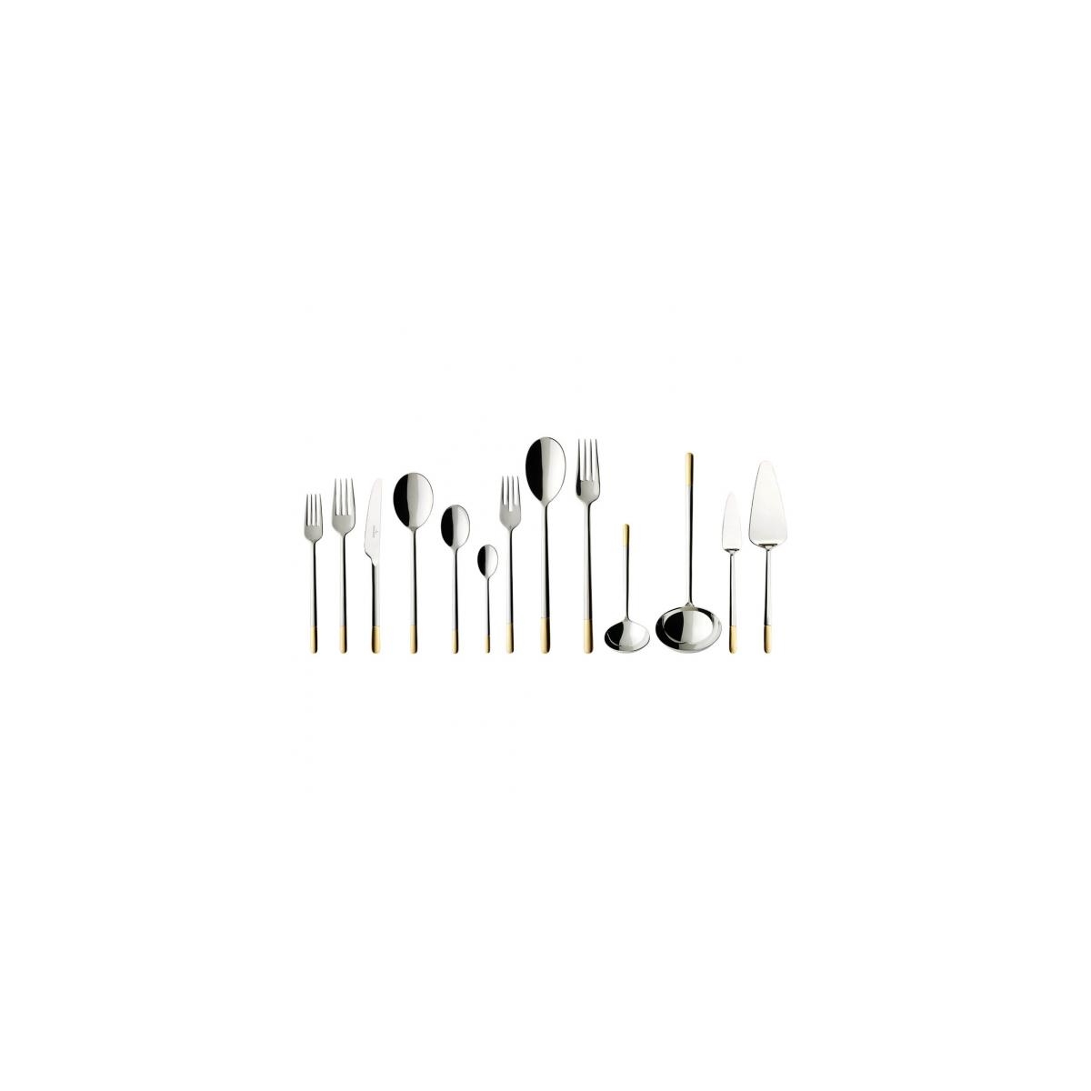 Zestaw sztućców dla 12 osób - 113 częściowy. Ella częściowo pozłacana to wyjątkowa propozycja marki Villeroy & Boch. Ella to prosta i elegancka seria sztućców o smukłej sylwetce. Podłużne uchwyty mają delikatny, satynowy dekor pod ozdobną linią i wyglądają wyjątkowo nowocześnie i kobieco.