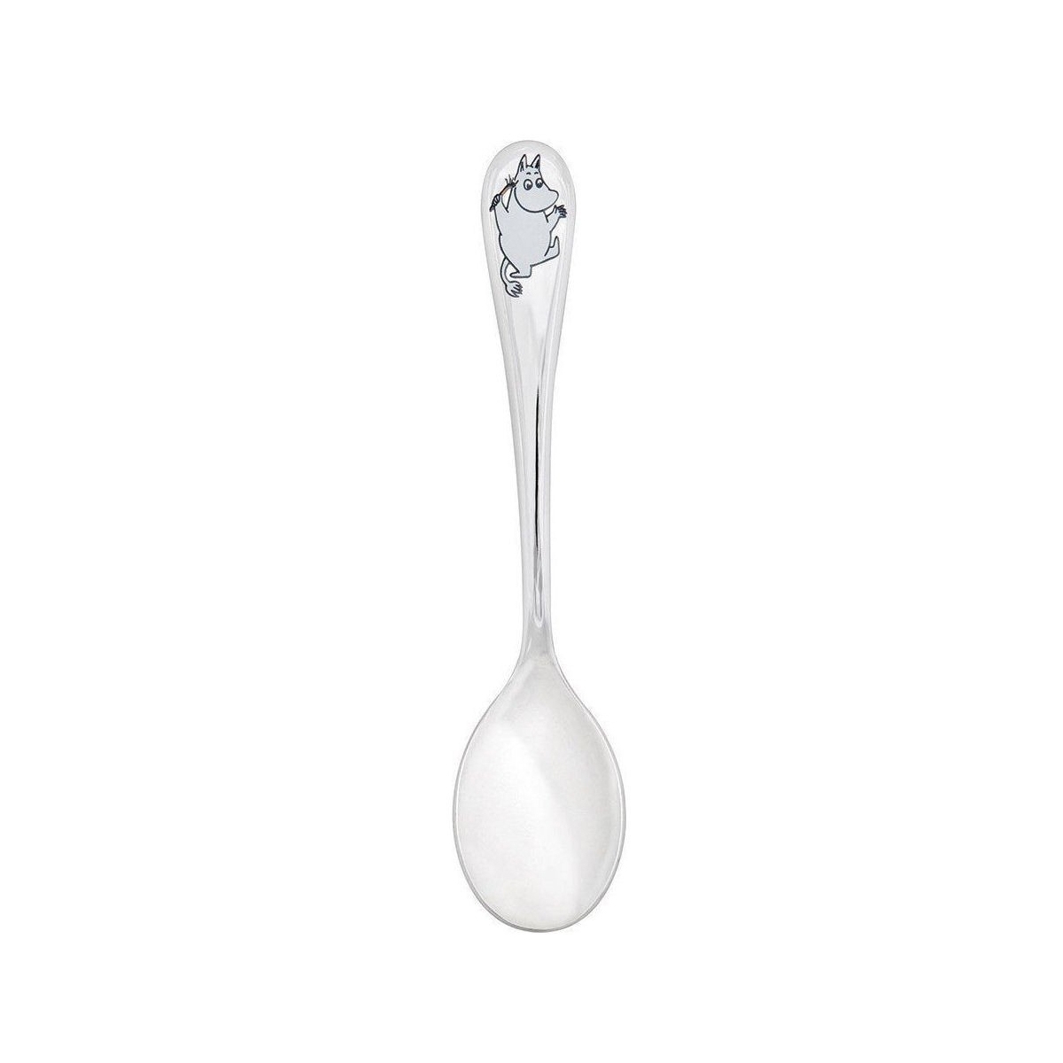 Łyżka z Muminkiem marki Arabia Finland. Kolekcja każdego roku jest wzbogacana o nowe wzory z bohaterami zamieszkującymi dolinę Muminków, a wśród nich Tata i Mama Muminka, Migotka, Włóczykij, Mała Mi, Buka i inni.