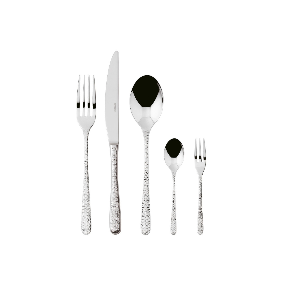 30-elementowy komplet sztućców dla 6 osób z kolekcji Venezia to wyjątkowa propozycja marki Sambonet. Sztućce łączą ergonomię i funkcjonalność, wyróżniają się dynamiczną elegancją, lecz ich wygląd jest subtelny i prosty. Piękna aranżacja stołu.
