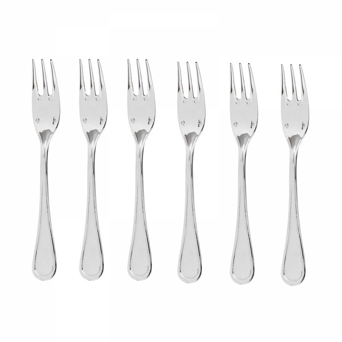 6-elementowy komplet widelczyków do ciasta z kolekcji Contour to wyjątkowa propozycja marki Sambonet. Sztućce łączą ergonomię i funkcjonalność, wyróżniają się dynamiczną elegancją, lecz ich wygląd jest subtelny i prosty. Piękna aranżacja stołu.