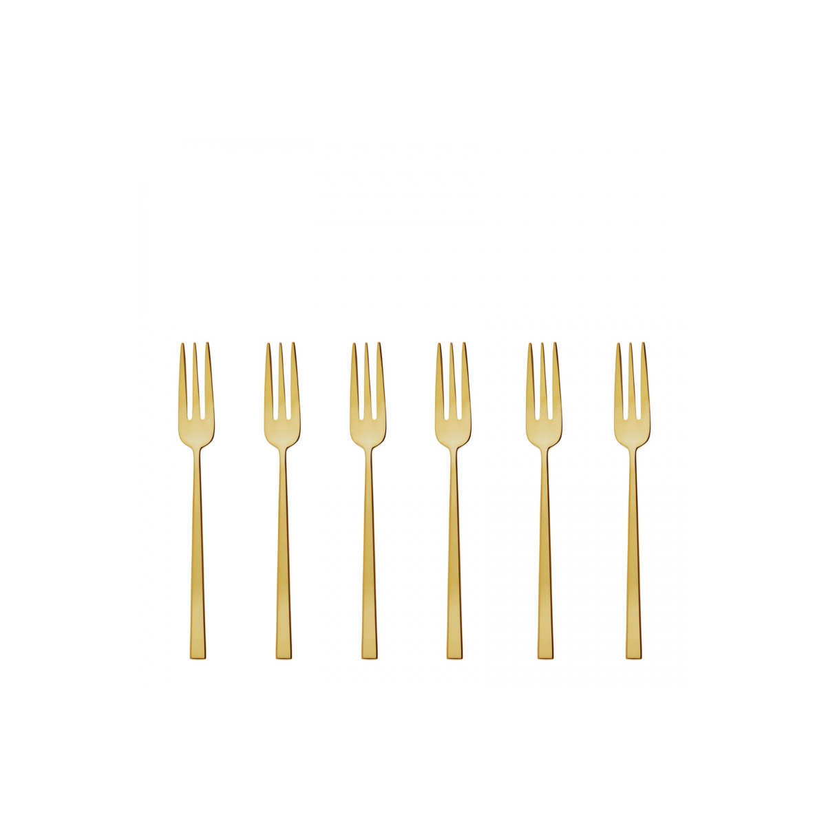 6-elementowy komplet widelczyków z kolekcji Rock Złoty to wyjątkowa propozycja marki Sambonet. Sztućce łączą ergonomię i funkcjonalność, wyróżniają się dynamiczną elegancją, lecz ich wygląd jest subtelny i prosty. Piękna aranżacja stołu.