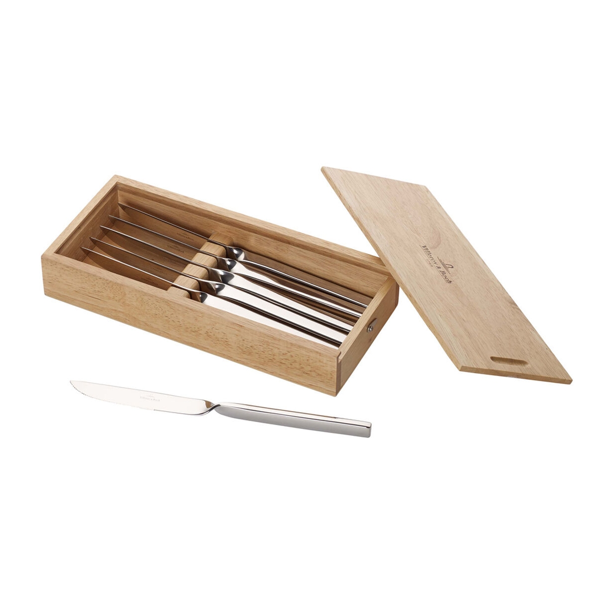 Zestaw noży do steków dla 6 osób. New Wave to wyjątkowa propozycja marki Villeroy & Boch. Sztućce NewWave łączą smukłą, pragmatyczną linię z charakterystyczną falistością designu New Wave. Nadaje to sztućcom młody, kreatywny charakter. Dla wszystkich, którzy lubią eksperymentować i lubią niezwykłe wzornictwo. Wykonany z wysokiej jakości stali nierdzewnej. Nadaj swojemu stołowi niezwykle stylowy charakter.