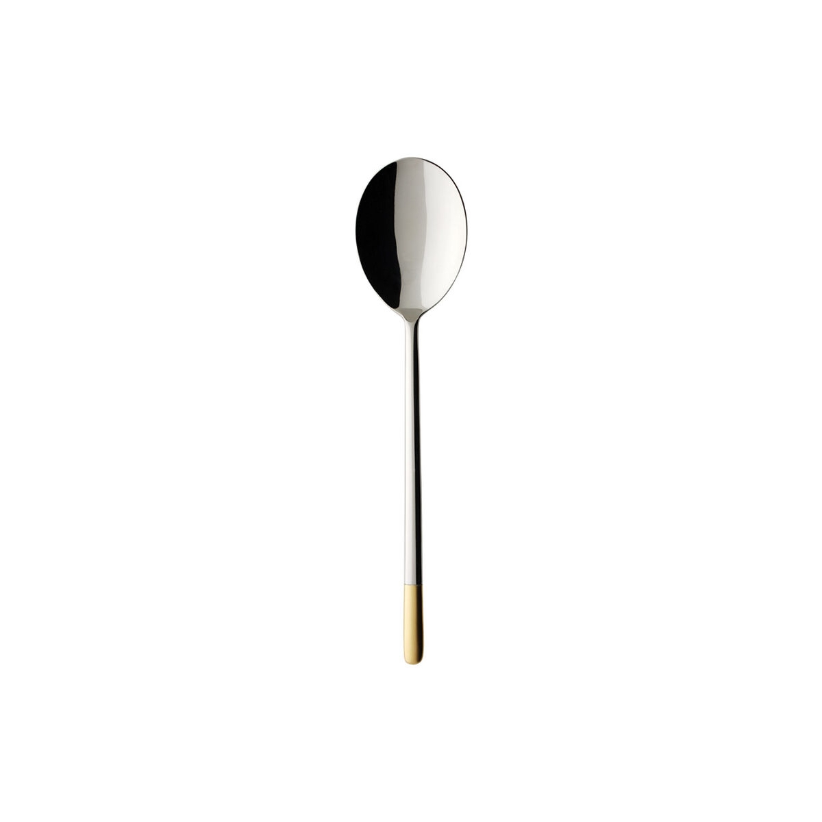 Łyżka do serwowania Ella Gold Plated - wyjątkowa propozycja marki Villeroy & Boch. Ella to prosta i elegancka seria sztućców o smukłej sylwetce. Podłużne uchwyty mają delikatny, złoty dekor pod ozdobną linią i wyglądają wyjątkowo nowocześnie i kobieco.