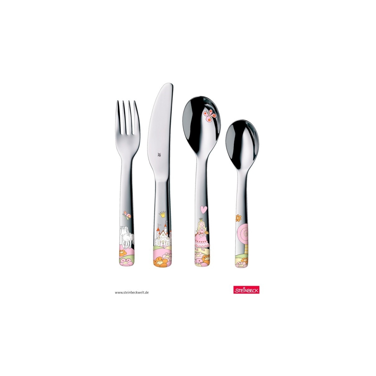 Rączki zdobią delikatne motywy księżniczek, które sprawiają, że każdy posiłek staje się przyjemnością. Sztućce wykonano z wysokiej jakości stali nierdzewnej Cromargan, odpornej na zarysowania i nadającej się do mycia w zmywarce.