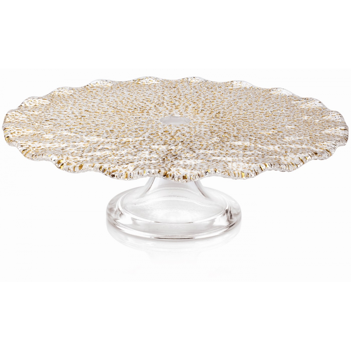 Patera na ciasto z kolekcji Special, wykonana z przezroczystego, prasowanego szkła. Jej powierzchnia ozdobiona jest zewnętrznym wzorem o nieregularnej strukturze, która subtelnie odbija światło i nadaje całości wyjątkowego charakteru. Idealna do eleganckiego serwowania wypieków, ciast i deserów.