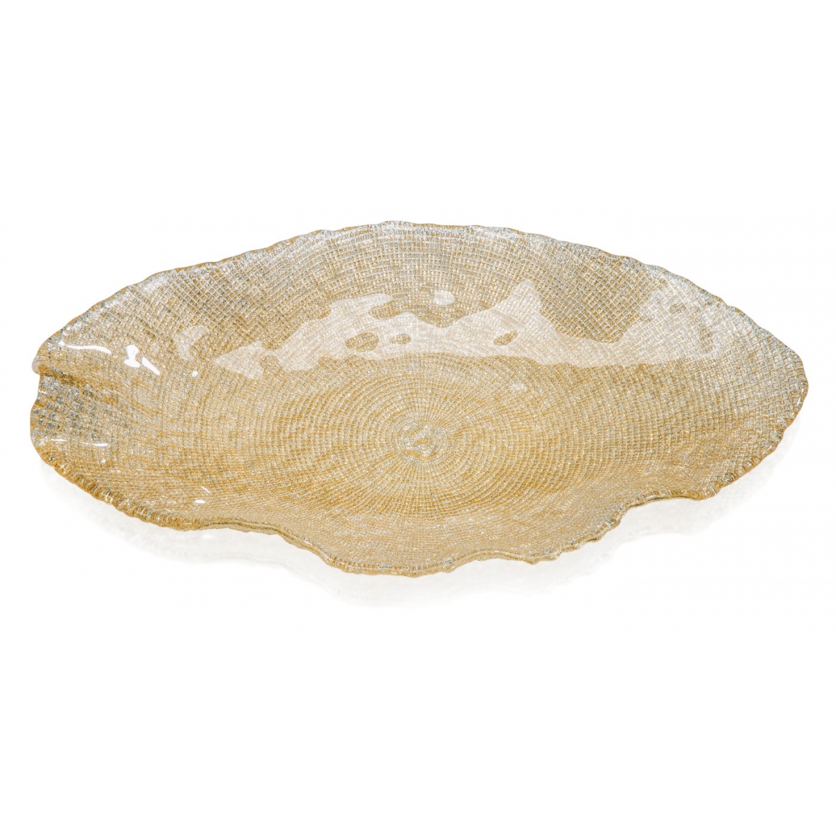 Patera owalna z kolekcji Folies wykonana z przezroczystego szkła prasowanego. Jej zewnętrzna powierzchnia zdobiona jest nieregularnym wzorem, który tworzy efektowną grę światła i faktury – błyszczącą, a zarazem przyjemną w dotyku. Idealna zarówno do serwowania, jak i jako dekoracyjny akcent na stole lub komodzie.