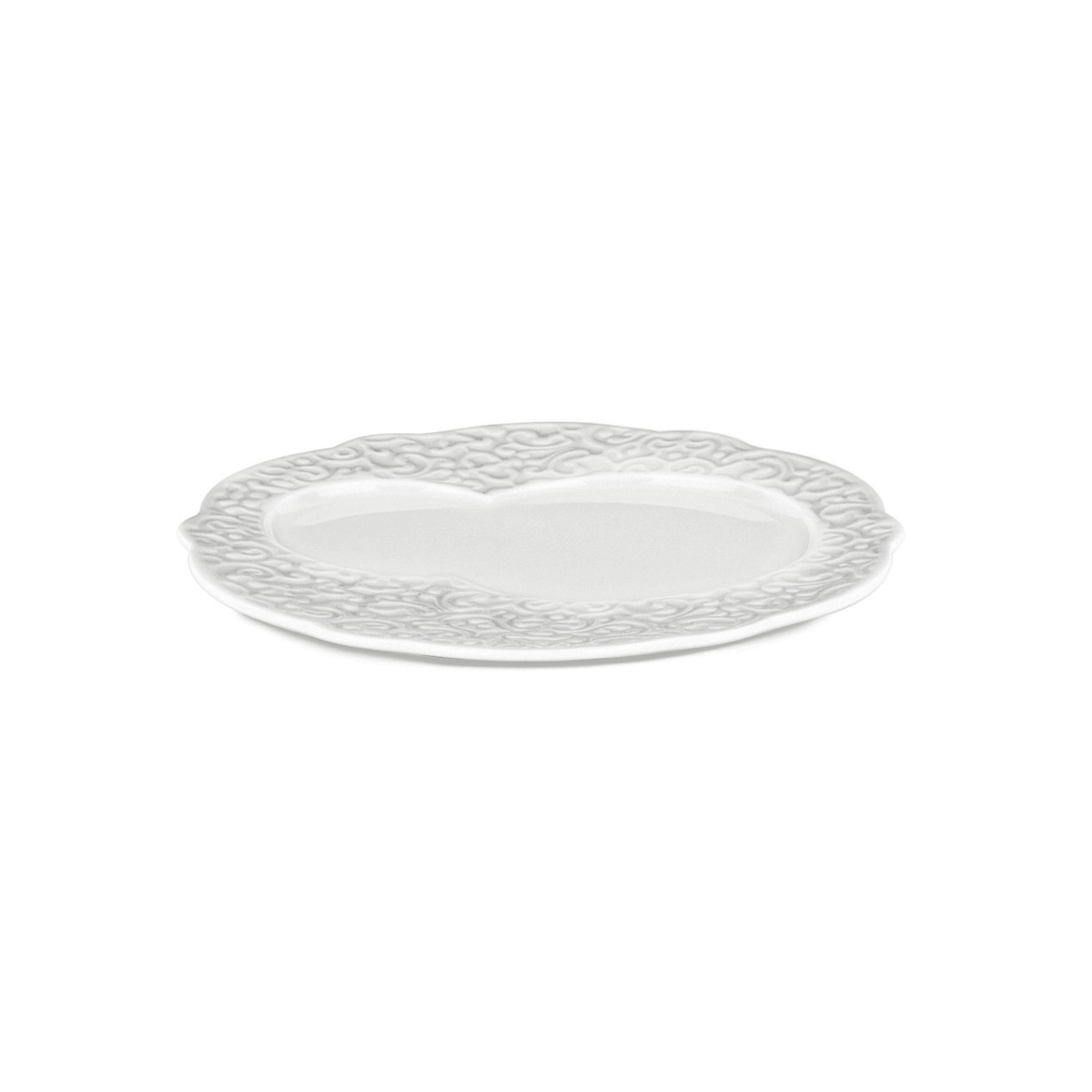 Talerz śniadaniowy Dressed projektu Marcela Wandersa od Alessi. Kolekcja charakteryzuje się dekoracją, która jest przyozdobiona jak piękna suknia i powinna jak najlepiej eksponować zawartość nie będąc zbyt przyćmiewającą. Piękna, efektowna kolekcja będzie ozdobą stylowej jadalni.