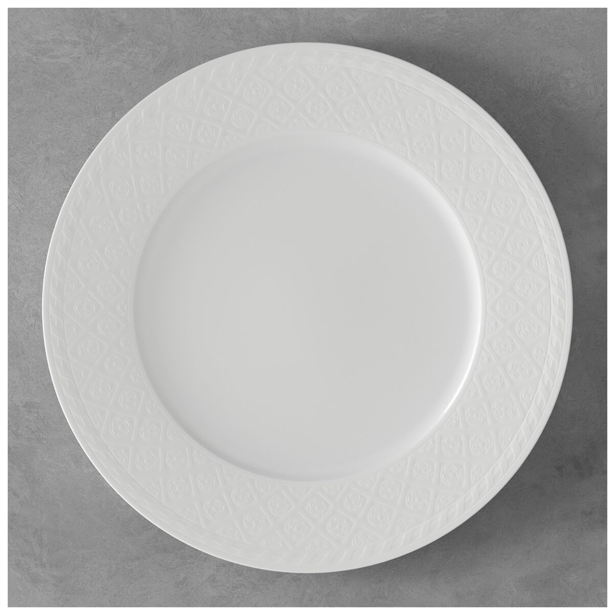 Duży talerz płaski obiadowy marki Villeroy & Boch z kolekcji Cellini. Kolekcja, która nawiązuje do stylu architektury renesansu i łączy naturalne kształty z kunsztownymi filigranowymi wypukłymi wzorami na wysokogatunkowej Premium Porcelain. Dzięki temu jej tradycyjny wdzięk tworzy efekt klasycznej elegancji na stole.