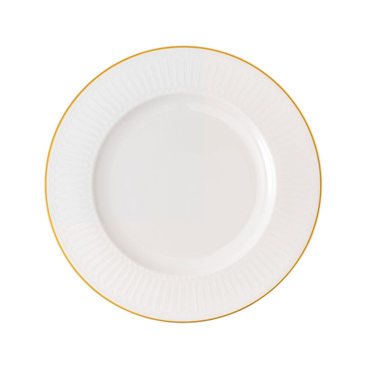 Talerz obiadowy z kolekcji Château Septfontaines od Villeroy & Boch. Château Septfontaines to prestiżowa kolekcja odnosząca swoją nazwę od zamku Château de Septfontaines w Luksemburgu. Wzory nawiązują do stylu barokowego i klasycystycznego, dodając kolekcji romantyzmu i elegancji. Charakterystyczny relief z błyszczącej porcelany tworzy ponadczasową elegancję, a delikatne wykończenie 20-karatowym złotem dodaje luksusu. Łączy w sobie tradycję i nowoczesność, idealna na specjalne okazje i jako prezent dla miłośników eleganckich wyrobów stołowych.