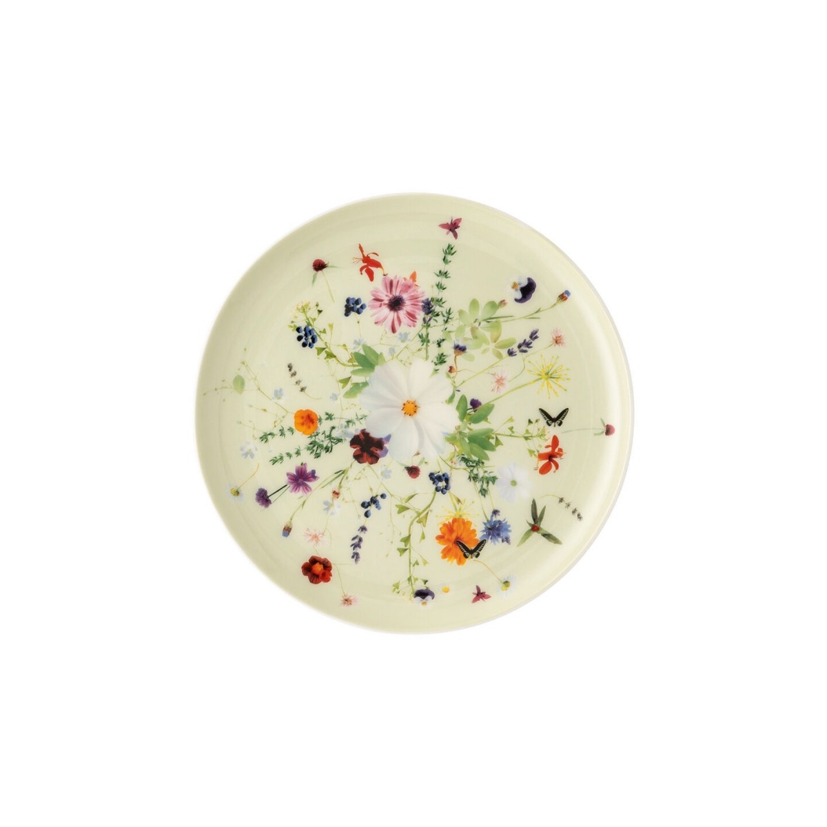 Talerz deserowy z kolekcji Brillance Wiosenny Ogród. Delikatna porcelana bone china marki Rosenthal, charakteryzująca się eleganckim połączeniem tradycji i nowoczesności. Jej wzornictwo odzwierciedla inspirację naturą, szczególnie pięknem wiosennego krajobrazu. Kolekcja wyróżnia się delikatnymi, świeżymi wzorami, które emanują subtelnością i wyjątkowym urokiem.