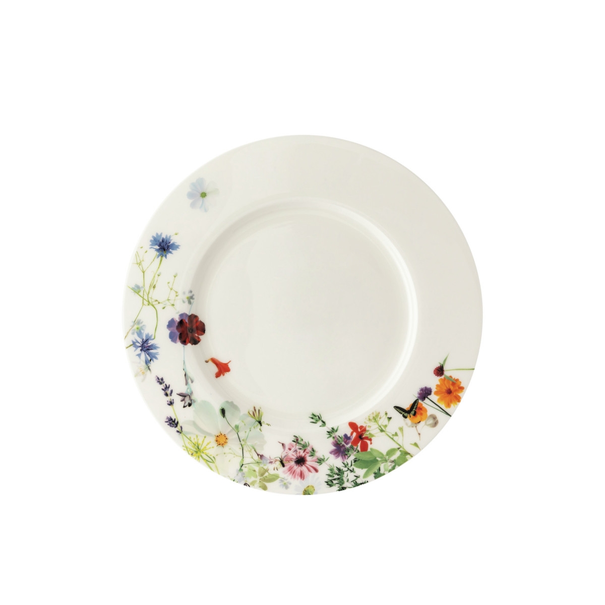 Talerz obiadowy z kolekcji Brillance Wiosenny Ogród. Delikatna porcelana bone china marki Rosenthal, charakteryzująca się eleganckim połączeniem tradycji i nowoczesności. Jej wzornictwo odzwierciedla inspirację naturą, szczególnie pięknem wiosennego krajobrazu. Kolekcja wyróżnia się delikatnymi, świeżymi wzorami, które emanują subtelnością i wyjątkowym urokiem.