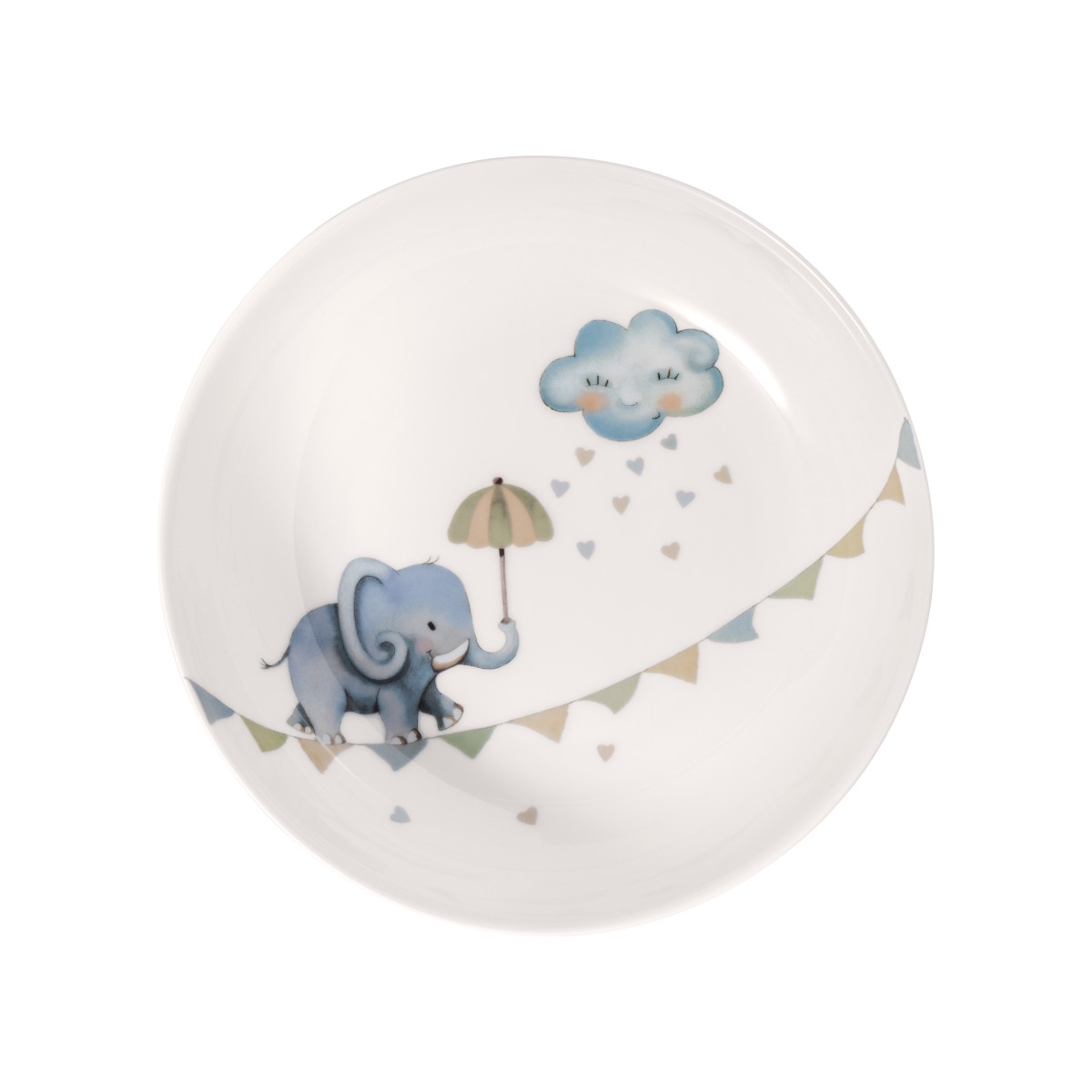 Dziecięcy talerz głęboki z kolekcji Walk like an Elephant od Villeroy & Boch. Seria dziecięcych naczyń z porcelany ozdobionych uroczym słoniem.