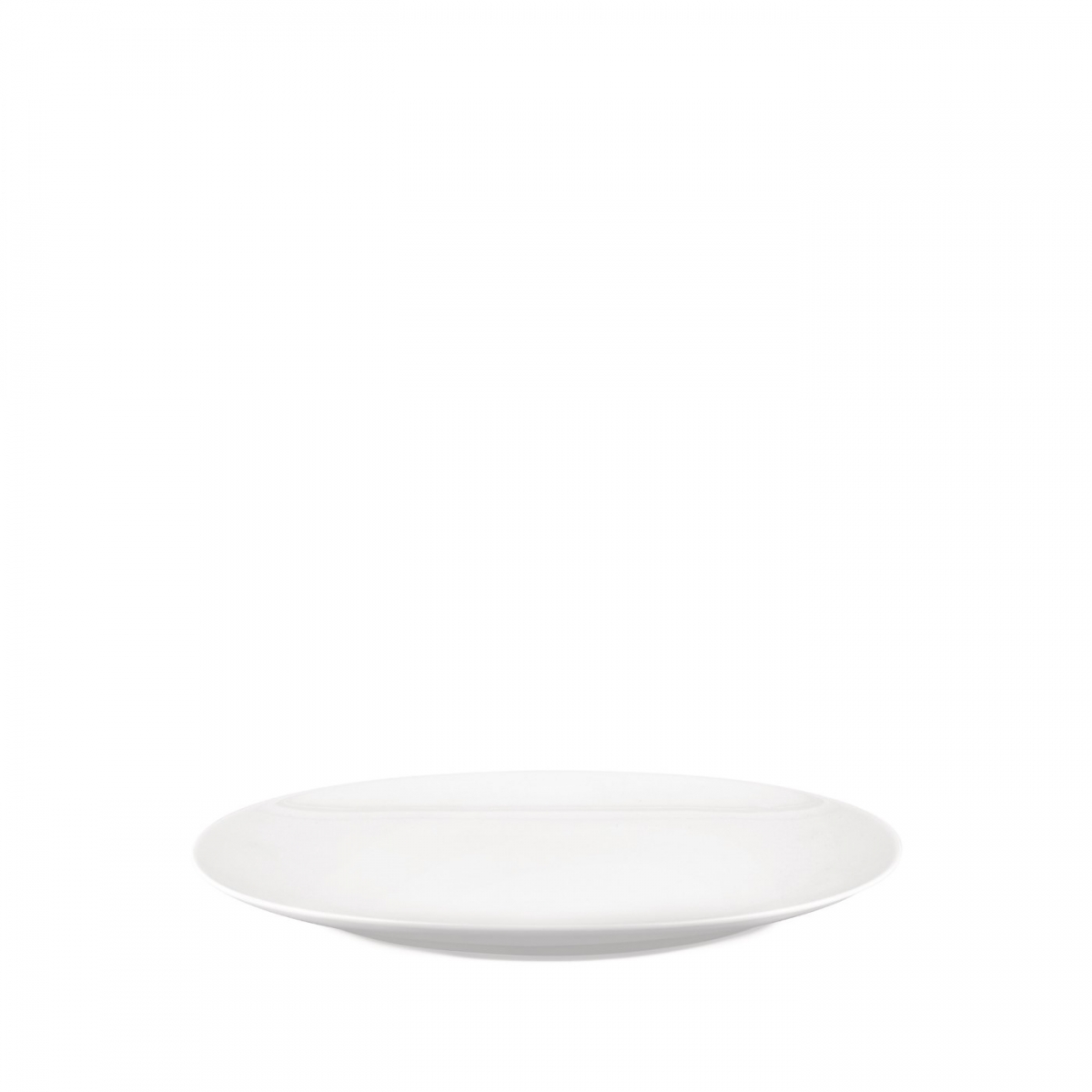 Talerz owalny do serwowania Mami od Alessi. Kolekcja zastawy stołowej z białej porcelany, wyróżniająca się subtelnym, klasycznym wzornictwem. Naczynia mają miękkie, faliste kształty, które dodają każdemu posiłkowi wyjątkowego charakteru. Stefano Giovannoni, projektując ten serwis, chciał połączyć zabawne elementy z nowym podejściem, koncentrującym się na klasycyzmie, harmonii i oryginalności. Swoje inspiracje czerpał z postaci matki, co odzwierciedla się w delikatnych liniach kolekcji. "Mami" to połączenie funkcjonalności z estetyką, które sprawia, że zastawa ta doskonale komponuje się w różnych aranżacjach stołowych, emanując dyskretną elegancją.