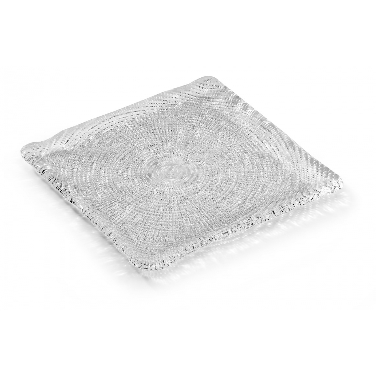Szklany talerz z kolekcji Diamanté marki IVV wyróżnia się nieregularnym, tłoczonym wzorem na zewnętrznej stronie, który nadaje mu wyjątkowy połysk i przyjemną fakturę. Przezroczyste szkło sprawia, że pasuje zarówno do codziennego użytku, jak i na eleganckie przyjęcia.