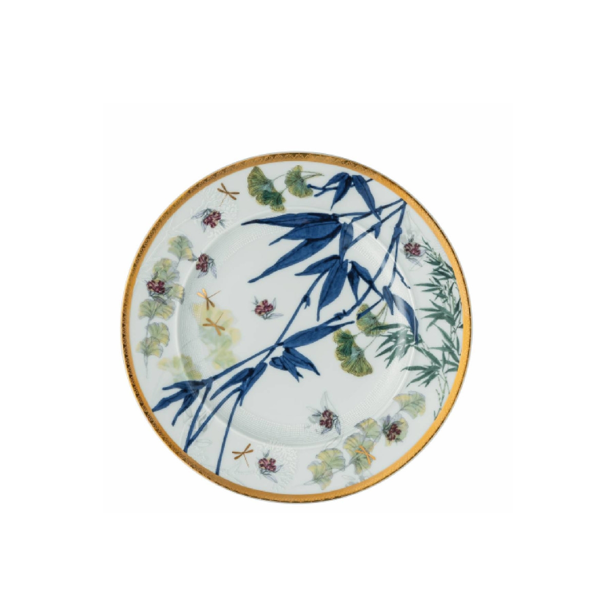 Elegancki porcelanowy talerz z kolekcji Turandot od Rosenthal, w wersji biało-złotej, doskonale łączy klasyczną formę z orientalną finezją. Ozdobiony subtelnymi złoceniami i motywami inspirowanymi chińską przyrodą, takimi jak liście bambusa i miłorzębu, nawiązuje do sztuki chinoiserie. Idealny do serwowania przystawek, deserów lub jako część kolekcjonerskiej zastawy.
