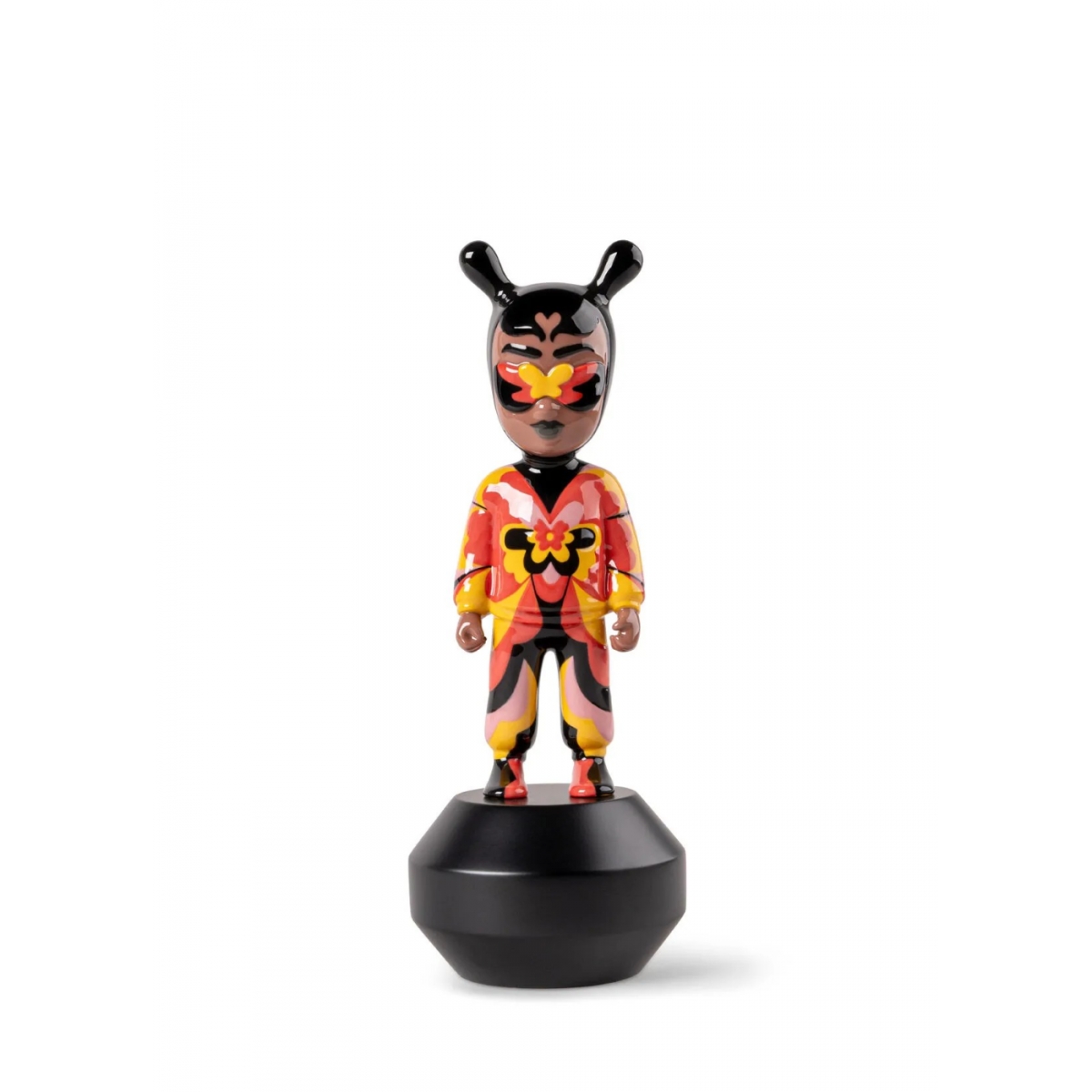 Figurka Gość - niespodziewany, urzekający, wyjątkowy... Gość to projekt Lladró Atelier, który zaprasza znanych artystów do nadania oryginalnego charakteru tej porcelanowej postaci. Postać z trzema dużymi oczami na twarzy, które „pozwalają mu widzieć przeszłość, teraźniejszość i przyszłość, jakby był posłańcem podróżującym w czasie”, odcienie niebieskiego na białej porcelanie, połączone z akcentami złotego połysku, aby oddać wrażenie prestiżu, tak blisko związanego ze starożytną chińską porcelaną.