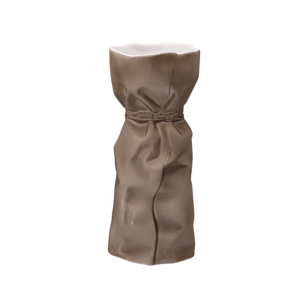 Wazon Papyrus wykonany z najwyższej jakości niemieckiej porcelany Kaiser w nowoczesnej formie. Kolekcja charakteryzuje się efektem zgniecionego papieru, powierzchnia wazonu jest ukształtowanym, pogniecionym papierem przewiązanym sznurkiem na kształt wazonu. Wazon idealny do nowoczesnego wnętrza.