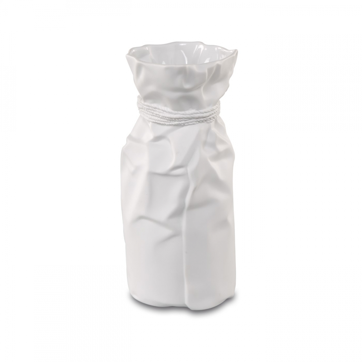 Wazon Papyrus wykonany z najwyższej jakości niemieckiej porcelany Kaiser w nowoczesnej formie. Kolekcja charakteryzuje się efektem zgniecionego papieru, powierzchnia wazonu jest ukształtowanym, pogniecionym papierem przewiązanym sznurkiem na kształt wazonu. Wazon idealny do nowoczesnego wnętrza.