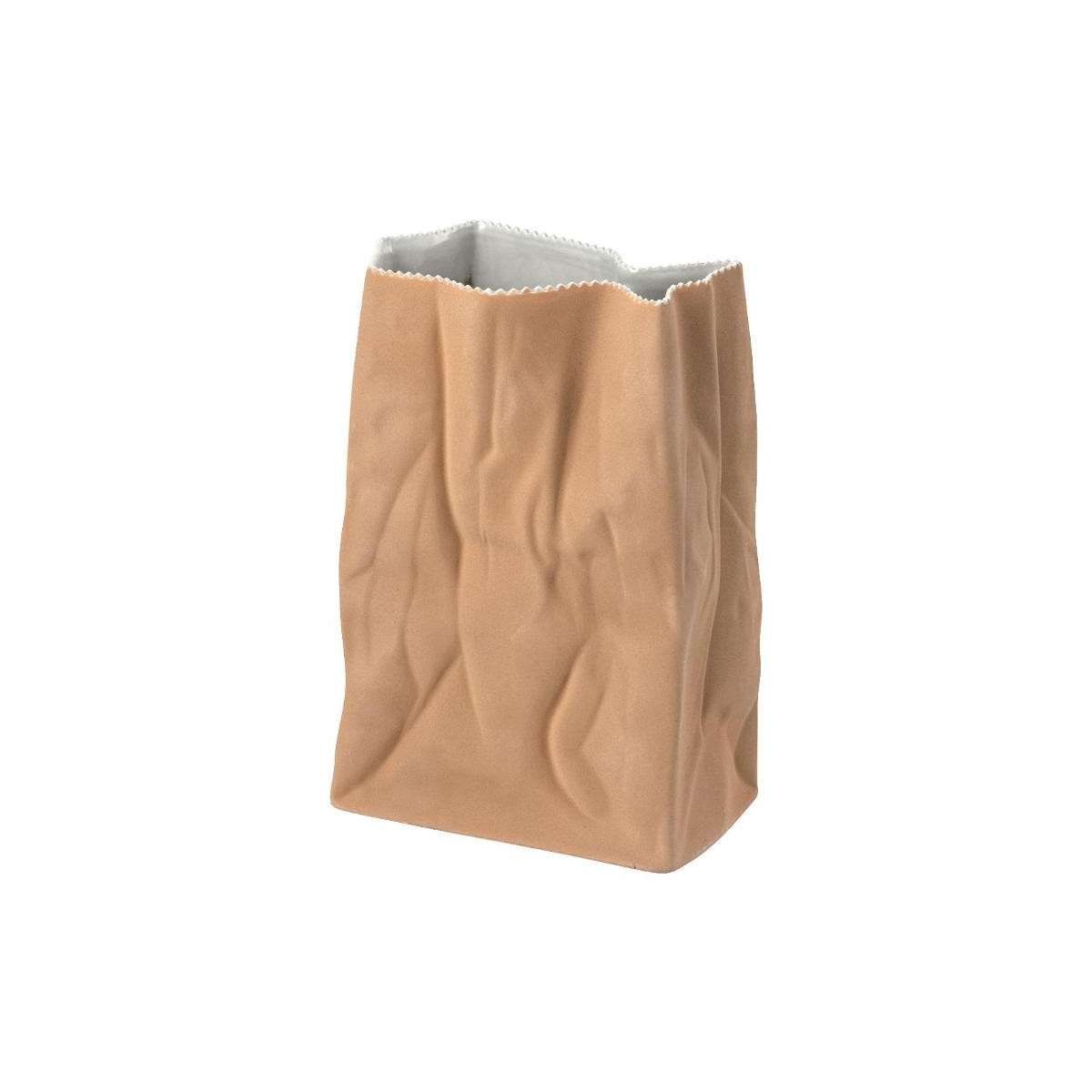 Niezwykły wazon "Paper Bag" o rozmiarze 18cm w kolorze brązowej papierowej torby, który swym wyglądem łączy uniwersalność, postęp i innowacyjność. Został zaprojektowany w ten sposób, aby przypominał papierową torbę. Realiztyczny kształt zagnieceń w papierze dopełnia jego kolor oraz wysokiej jakości matowa porcelana marki Rosenthal.
