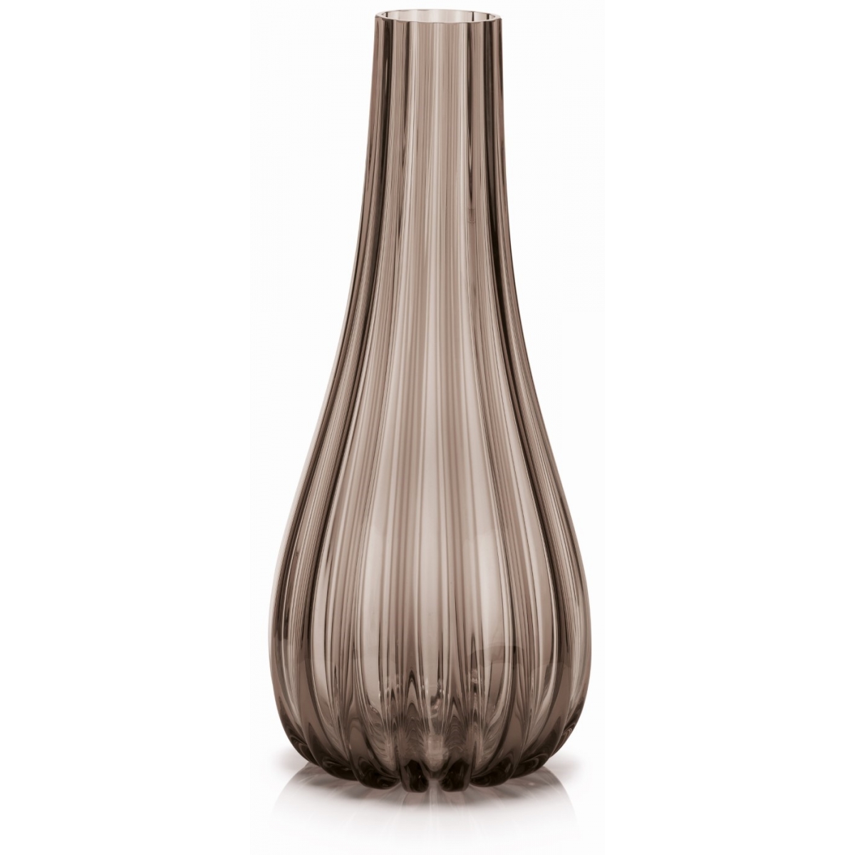 Wazon z przezroczystego szkła dmuchanego, wykonany ręcznie bez użycia formy, dzięki czemu każdy egzemplarz jest unikalny. Łączy funkcję dekoracyjną i użytkową.