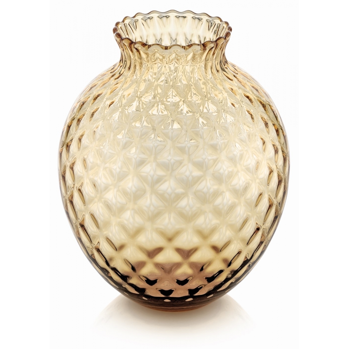 Wazon z kolekcji Infiore wykonany ze szkła transparentnego lub barwionego w masie (gołębia szarość, bursztyn), dostępny w trzech rozmiarach. Idealny zarówno jako klasyczny wazon, jak i stylowy element dekoracyjny – świetnie prezentuje się solo lub w zestawie z innymi kształtami i kolorami.