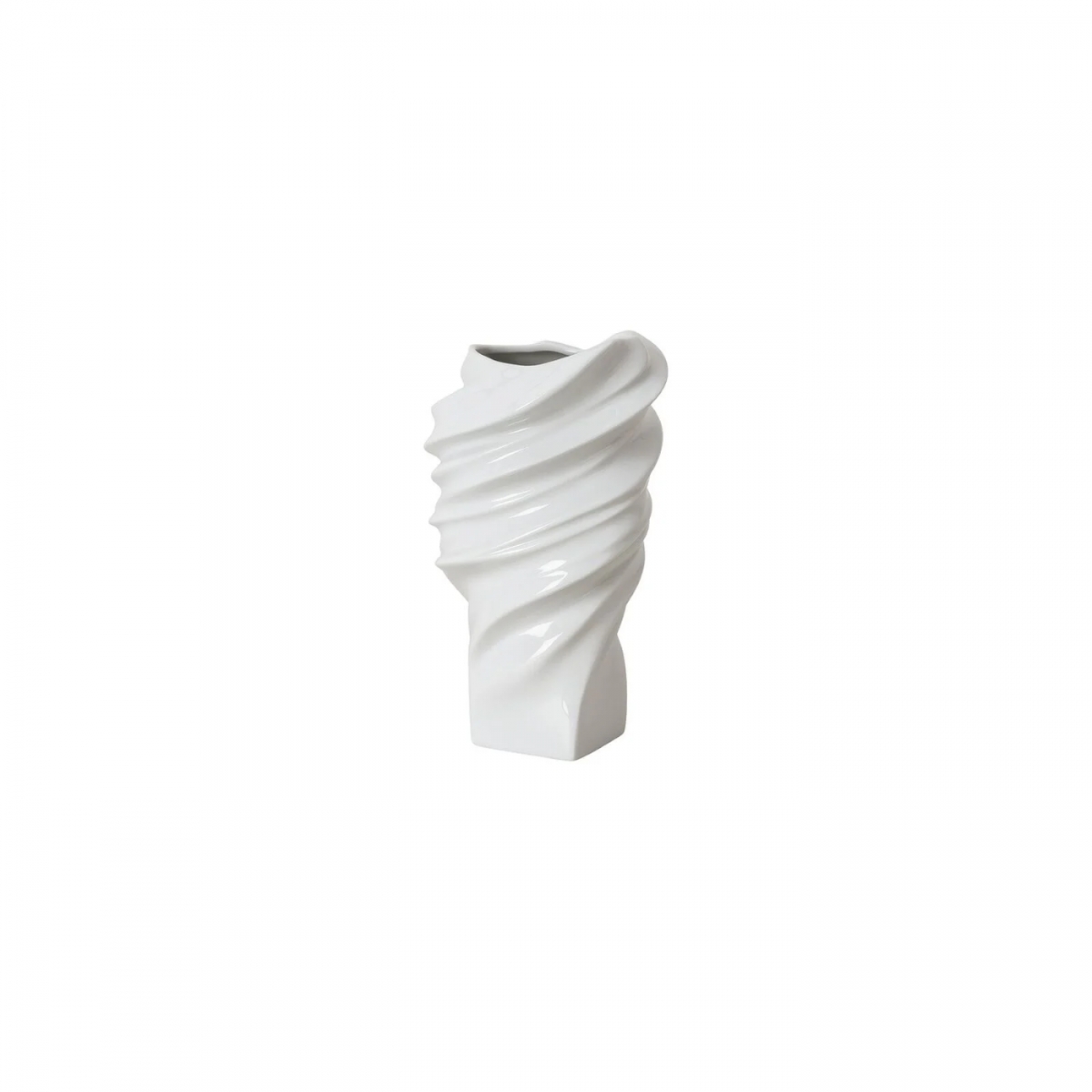 Wazon Squall Weiss marki Rosenthal to wyjątkowy przykład nowoczesnego wzornictwa zamkniętego w klasycznej, matowej bieli porcelany. Jego dynamiczna, skręcona forma przywodzi na myśl ruch powietrza – tytułowy squall – czyli nagły podmuch wiatru. Ta rzeźbiarska sylwetka sprawia, że wazon doskonale prezentuje się zarówno z kwiatami, jak i jako samodzielny obiekt dekoracyjny.