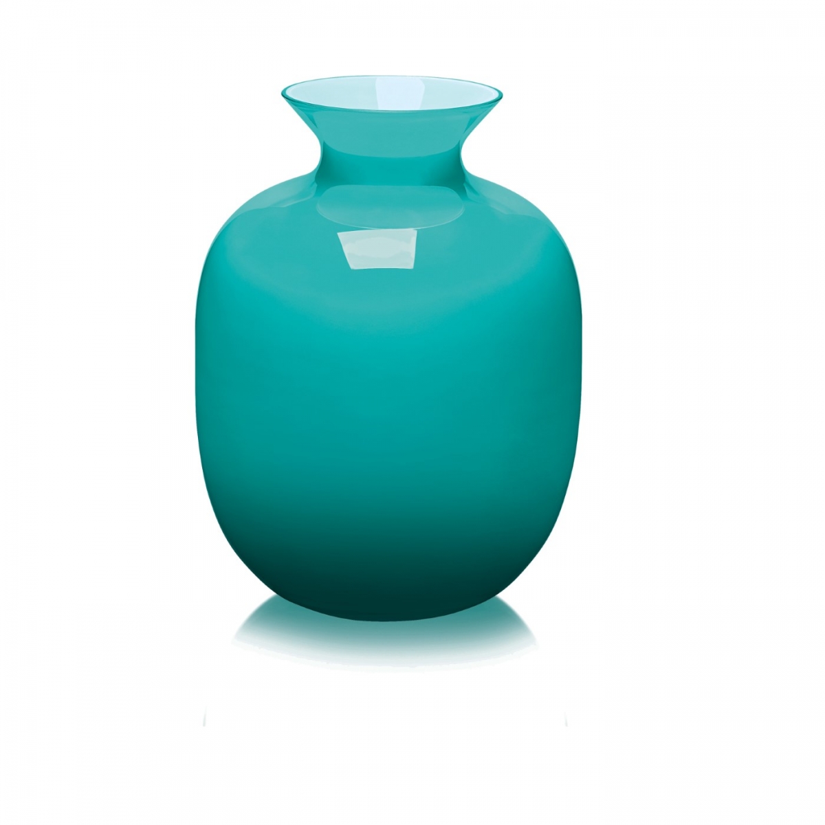 Wazon z kolekcji Rialto wykonany z białego szkła lakierowanego, ozdobiony subtelnym miętowym zdobieniem. Model o wysokości 12 cm łączy minimalistyczną formę z eleganckim wykończeniem, wpisując się w nowoczesne i klasyczne aranżacje wnętrz.
