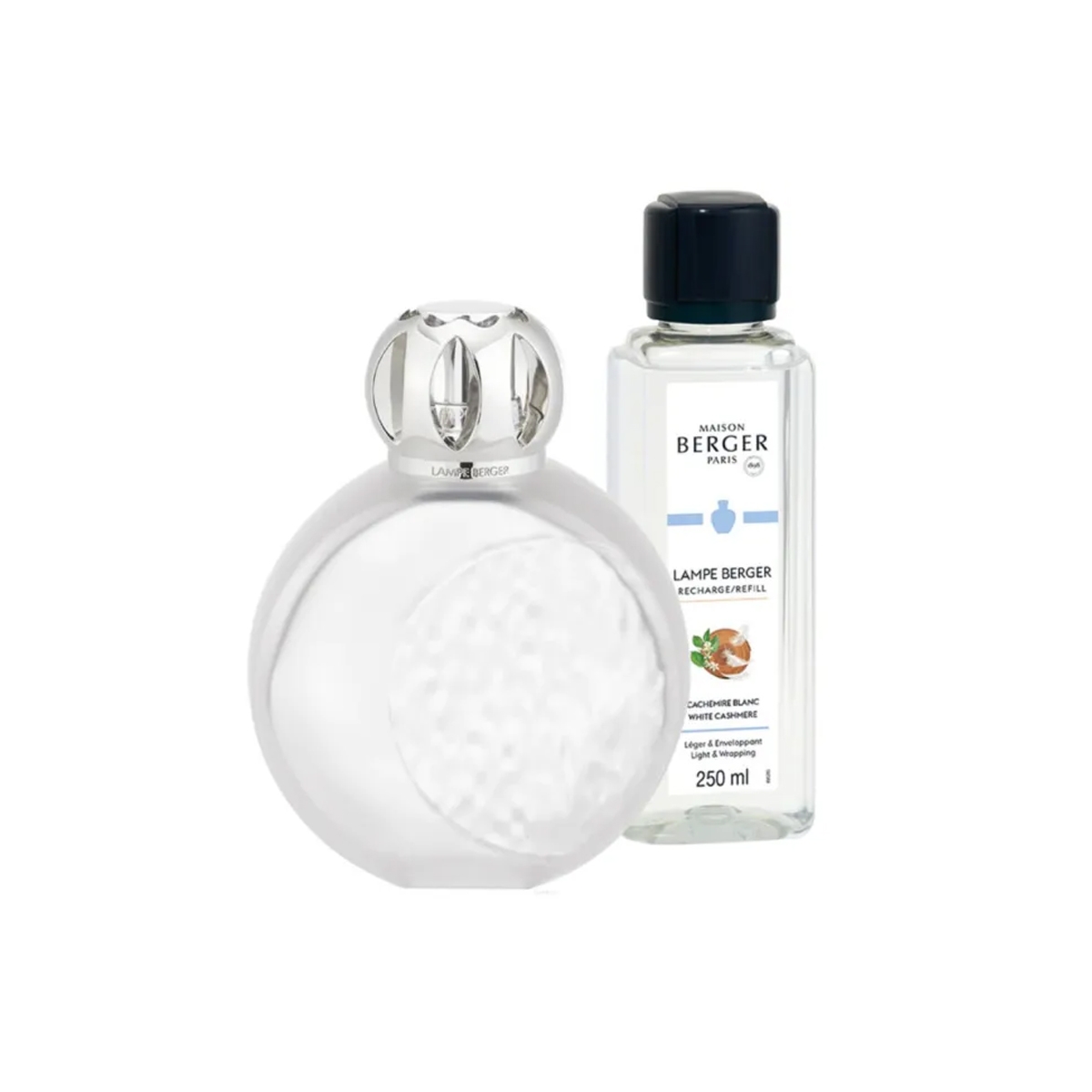 Lampa zapachowa Astral + olejek zapachowy Biały kaszmir marki Maison Berger Paris to przepiękny elegancki flakonik z dekoracją półksiężyca. Olejek zapachowy Biały kaszmir, świeży i delikatny to połączenie zapachów bergamotki i kaszmiru z dodatkiem wodnych aromatów oraz jaśminu, kwiatu pomarańczy, ylang-ylang oraz paczuli, drzewa sandałowego i białego piżma.