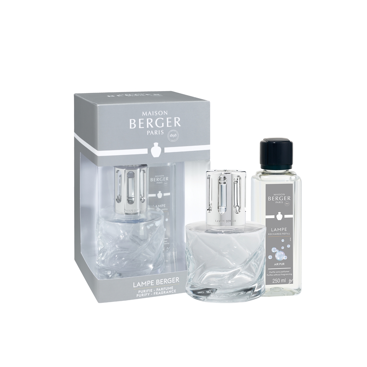 Zestaw Spirale przezroczysty marki Maison Berger Paris. Lampa szklana katalityczna z dyfuzorem + olejek zapachowy "Velvet of Orient" (250 ml).